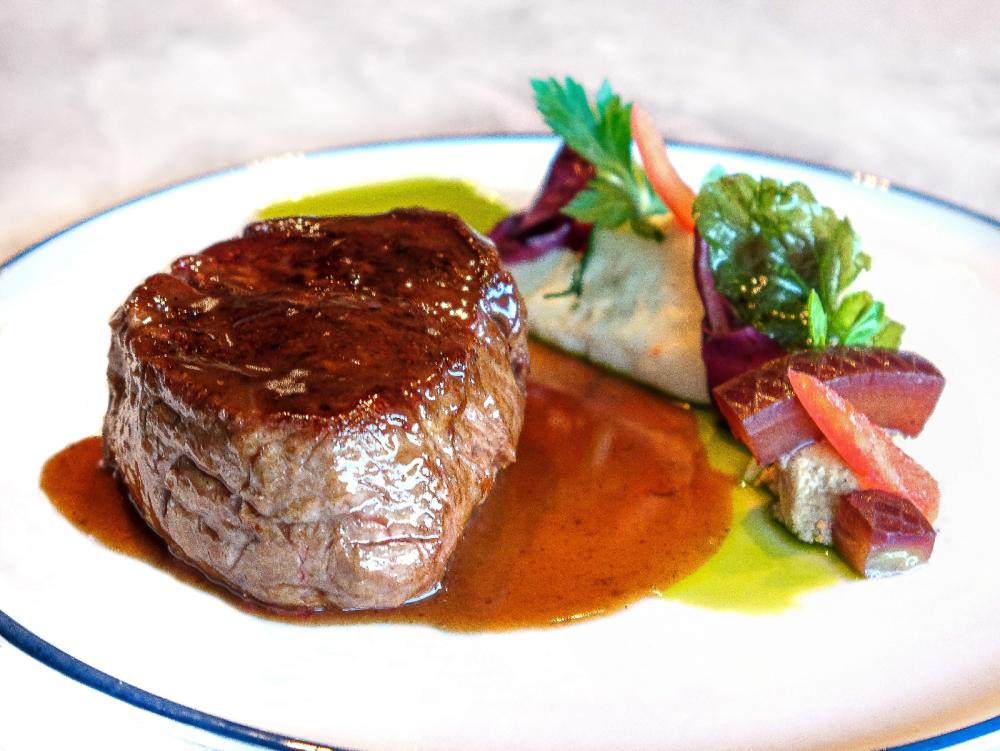 Naša prva posjeta ovom restoranu bila je i izazovna u smislu narudžbe, teško se odlučiti u tako bogatom jelovniku. Za prvi put, odabrali smo i preporučujemo svakako sve s jelovnika, ali ovog puta: bruskete sa lososom, idealne za lagan početak, preko Jadranske cezar salate koja donosi svježinu Mediterana, pa sve do sočnog, savršeno pripremljenog bifteka u sosu od crvenog vina — jela zbog kojeg se dolazi namjenski, a ne usput. Sva jela su bila fantastična, a biftek moram izdvojiti, očekivala sam da bude odličan, međutim on je savršen, što je rijetkost i u restoranima sa dugom tradicijom. Preporuka za sve koji vole taj posebni, za kuvare zahtjevan s više apekata gastronomski specijalitet.