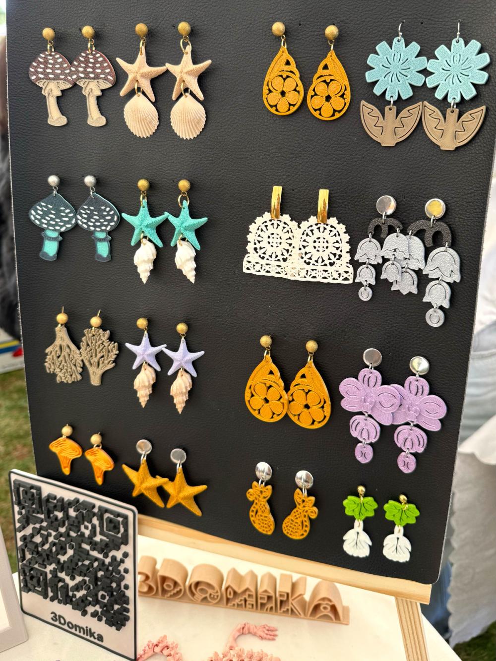 „Gljive Crne Gore“ – šumska estetika i edukacija Krajem ljeta, kad cvjetovi zamiru, nastaje jesenja priča o gljivama—istovremeno estetska i edukativna. Predstavljeno je sedam upečatljivih vrsta: neke zbog forme i boje, druge zbog globalne prepoznatljivosti. Broševi i minđuše dolaze kao pojedinačni motivi ili male kompozicije na podlozi nalik kori drveta (štampanoj filamentom sa ~30% drvene piljevine). Gljive i stilizovane grančice jela izrađene su filamentom sa svilenim ili metalik efektom, zbog čega se komadi nježno presijavaju na suncu—lagani su, uprkos većim dimenzijama. Svaki komad prati razglednica sa originalnim skicama Olge Đurović i nazivima gljiva; na poleđini je prostor za poruku, pa cijela linija funkcioniše kao pažljivo osmišljen poklon.