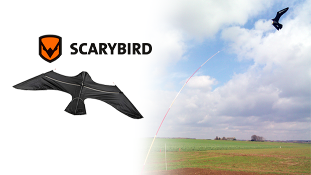 Stručnjaci francuske firme SCARYBIRD su posmatranjem utvrdili da se manje ptice plaše samo velikog predatora koji ih odbija svojom pojavom. Zato su od specijalnih materijala konstruisali zmaja sa izgledom grabvljivca (orao, soko, jastreb) koji se jačinom vetra (min 2km/h) njiše na vrhu specijalnog teleskop štapa i tako oponaša let velikog predatora u potpuno nepravilnom i asimetričnom letu. Uređaj je pokazao visoku efikasnot, 100% je ekološki, ne troši energiju osim vetra, nije bučan, nije invanzivan, lako se montira i prenosi, a što je najvažnije, nije skup i traje više sezona! U uslovima kvadratnog ili blago pravougaonog oblika terena, uređaj pokriva površinu od oko 1ha bez zaklona (zgrade, šume).