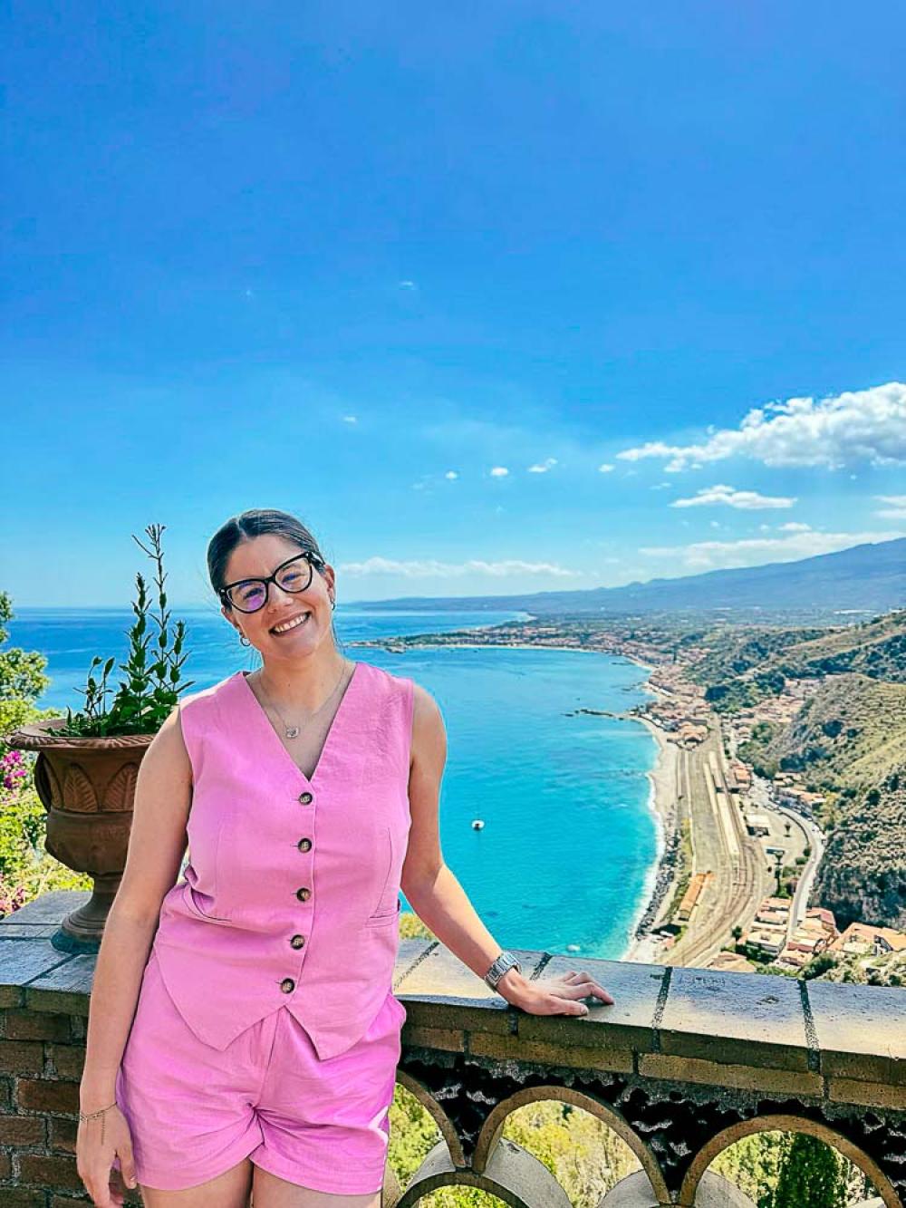 Nakon Sirakuze, odlučile smo da bi bila šteta da ne posjetimo i Taorminu, koja nam je bila zaista blizu. A podatak da je tamo snimana sezona serije „Bijeli lotos“, koju smo sve odgledale u jednom danu, nije škodio. Grad kao iz snova, uzdignut iznad mora, sa pogledima koji oduzimaju dah. Svaka terasa, svaka ulica u Taormini djeluje kao da je napravljena da bi se na njoj zastalo. Antički teatar, uklesan u brdu, i dalje se koristi za koncerte, a sa njegovih tribina vidi se i more i Etna. Ovdje svaka fotografija zaista izgleda kao razglednica. Cvjetne terase, miris lavande, šetnje kroz uske ulice prepune malih prodavnica, galerija i kafića – ovdje je sve napravljeno da čovjek uspori. Uživale smo u pogledu, svježem vazduhu i kanolima koji su se topili u ustima.