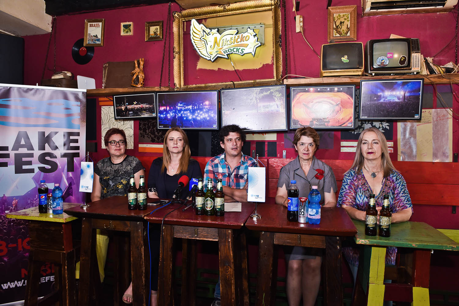 Direktor festivala Peđa Zečević, u društvu predstavnika generalnih sponzora festivala, Natalije Milić iz Pivare “Trebjesa”, Eleonore Albijanić iz Elektroprivrede Crne Gore, Sonje Nikčević, potpredsjednice opštine Nikšić i Slavice Grgurević TO Nikšić.