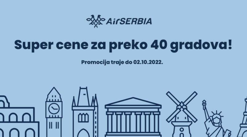 Srpska nacionalna avio-kompanija Air Serbia pripremila je akciju tokom koje će putnici biti u prilici da kupe avio-karte po atraktivnim cenama, i to za više od 40 destinacija u regionu, Evropi i Americi. Promotivne avio-karte biće u prodaji od 19. septembra do 2. oktobra, a odnosiće se na putovanja u periodu od 29. septembra ove godine do 29. marta 2023. godine. Tokom dvije nedjelje trajanja akcije, putnici će moći da kupe avio-karte po početnoj ceni od 39 do 69€ po smjeru.