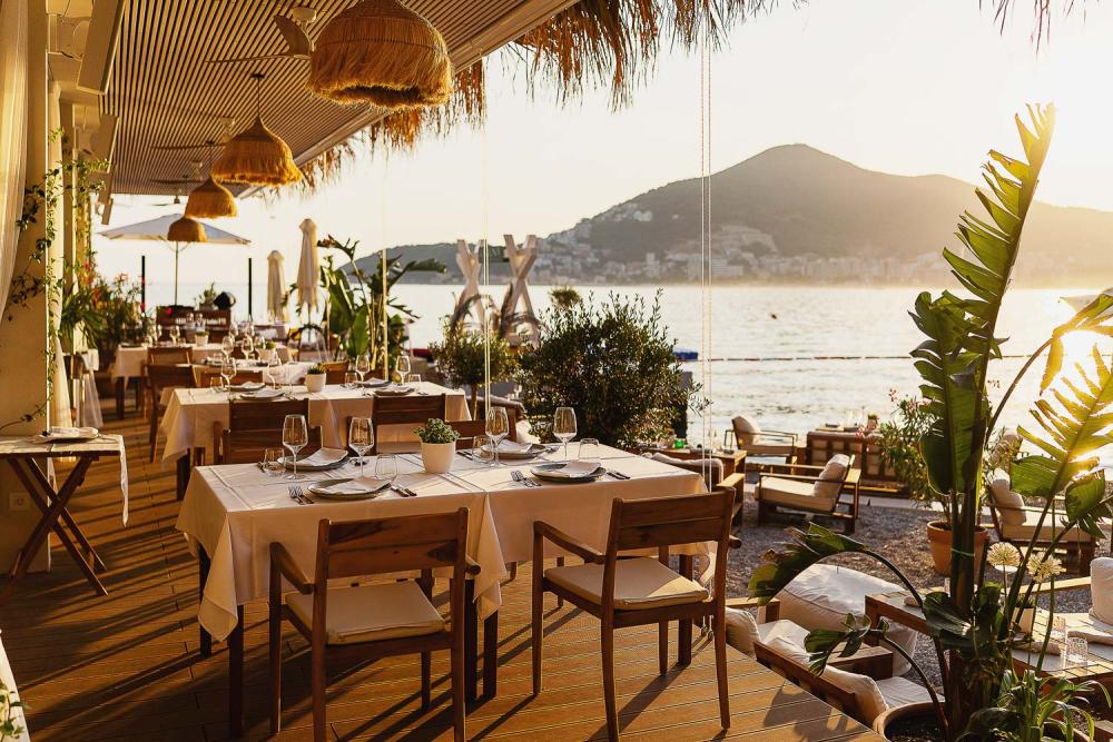 Na samoj obali smješten je prozračni restoran čiji je meni nadahnut svježinom Mediterana. Svakodnevni svježi ulov predstavljen je u “svježem marketu”, dok delicije iz mora gosti mogu birati direktno iz bogatog akvarijuma. Pažljivo pripremljeni specijaliteti i bogata vinska karta sa biranim etiketama sa svih strana svijeta stvaraju gastronomsko iskustvo koje budi sva čula.