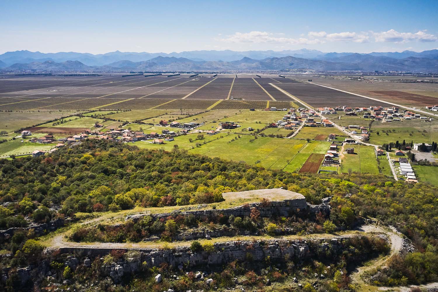 Zborno mjesto bila nam je benzinska stanica Petrol, na samom ulazu u varošicu Tuzi. Kolega Vedran i ja smo poranili da bismo popili kafu i razbudili se prije obilaska. Dok smo punili gorivo, vrijeme smo iskoristili da dronom napravimo nekoliko fotografija brda Šipčanik. Nekada je na vrhu brda bila turska tvrđava, dok se danas na vrhu nalazi zaravan sa koje puca predivan pogled na vinograde “Plantaža”, ravničarski dio Malesije i Zetske ravnice. Uspon na ovo brdašce je poprilično lagan, pa ga predlažemo kao jedno od mjesta koje možete iskoristiti za lagani hajking i piknik.
